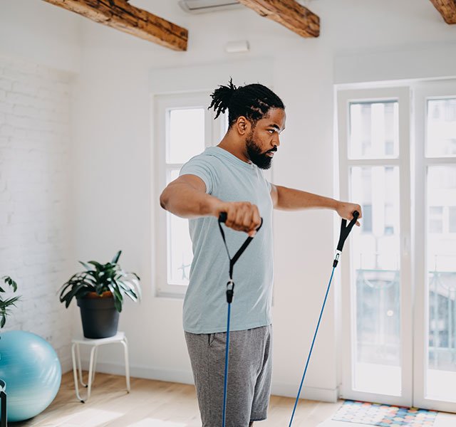 - Use a light resistance band or light dumbbell and lift straight arms up to shoulder height in front and to your sides