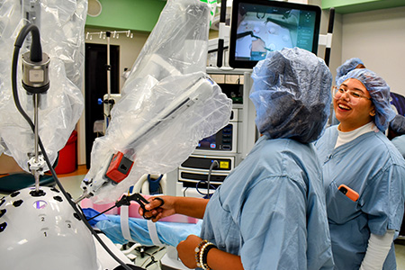 RYSE MED scholars also receive hands-on clinical experiences in Henry Ford Hospital’s Center for Simulation, Education and Research, where they undergo CPR and ultrasound training, perform simulated laparoscopic surgeries, learn how to suture, and even treat clinical cases using simulated patient mannequins and virtual reality.