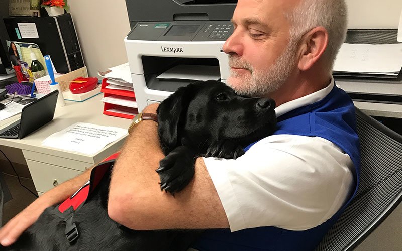 - Reduce staff stress: Studies have found that interacting with a therapy dog can help re-energize and motivate hospital staff.