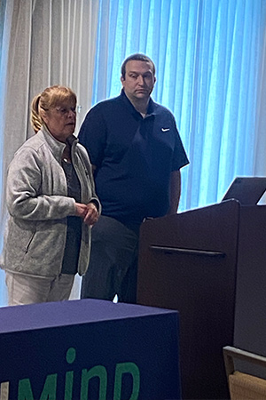 Ganj Beebani, M.D., Senior Staff Psychiatrist at Henry Ford Health, led a discussion on care pathways for suicide prevention. He and Sarah Moore, LMSW, MI Mind Clinical Quality Improvement Trainer, enjoyed a meeting break.
