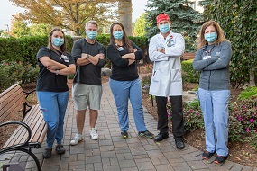 Dr. Colucci met Legace at the ER entrance. “He was on the cusp of being intubated by the time he arrived for treatment,” said Dr. Colucci. With Legace’s oxygen saturation level at 77 percent, Dr. Colucci immediately put him on oxygen treatment. Legace also received remdesivir, an antiviral medicine that works to stop the virus from spreading.
