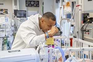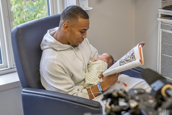 During his visit St. Brown shadowed NICU nurses, learning about their day-to-day responsibilities. He read to one of the babies, practiced “changing diapers” and gaining insight into the dedication it takes to provide critical care to newborns.