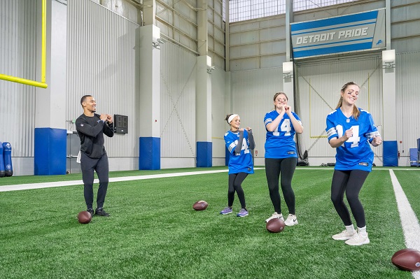 Next, St. Brown invited the nurses to the Lions practice facility, where he flipped the script — teaching them what it takes to be an NFL receiver for a day. St. Brown ran nurses Emily Cheek, Alana Drylie and Kayla Yancho through drills and taught them what it takes to do an end-zone dance.
