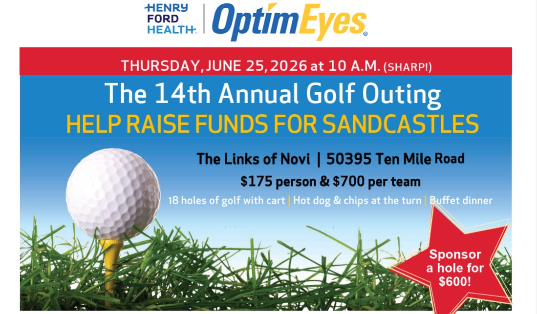 Hit it off at Henry Ford OptimEyes’ 14th annual four-person scramble. Enjoy 18 holes of golf with a cart, hot dogs and chips at the turn, a buffet dinner, and the chance to win fabulous prizes and help raise funds for HF SandCastles Camp. Great opportunity to gather as friends, talk optics, and play a charitable round of golf.