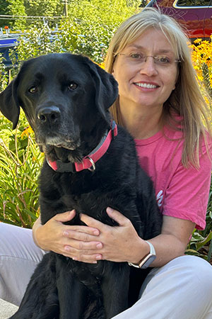 To renew her energy, Chris visits many of the friends who sent her gifts and took her to dinners after surgery. Plus, she plays with her black Labrador, a happy dog that thumps her tail in her sleep. Chris also landscapes her yard with lots of flowers, then sits back and enjoys the work she’s done.