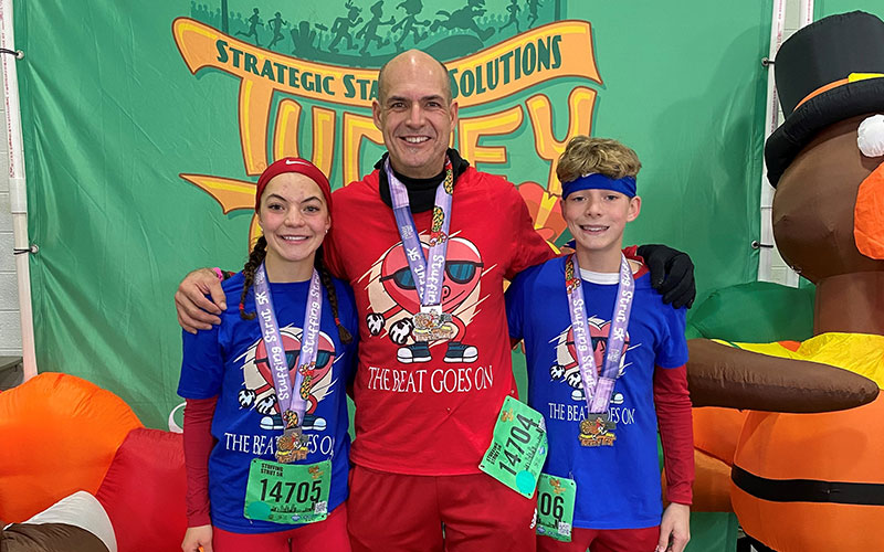 Along with his daughter and with clearance from his doctor, Chris resumed their Sunday morning runs just one week after the heart attack. “I wanted to provide my daughter a lesson in resiliency and determination, and to finish what you start,” said Chris. A Thanksgiving Day Turkey Trot saw Chris, his son Henry, and Karley crossing the finish line together, capturing a moment of triumph.