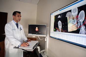 Being a pioneer in cancer research and treatments, our patients have access to leading-edge head and neck cancer treatment options. Our head and neck cancer team includes medical oncologists, radiation oncologists, nutritionists, Speech-Language pathologists and otolaryngologists who care for more than 300 patients every year. We have a multidisciplinary tumor board which meets regularly to discuss cases and brings together experts specializing in surgery, radiation, chemotherapy and speech-language pathology. Our patients benefit from advanced techniques such as photodynamic therapy, trans-oral robotic surgery, and trans-oral laser surgery to fight your head and neck cancer and provide a quality of life after diagnosis.