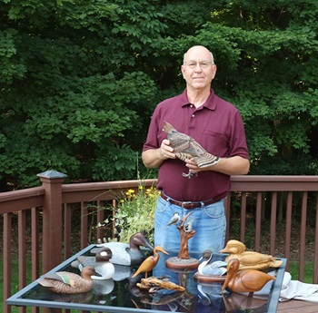 Outside the range, the retired Consumers Energy forestry operations manager stays active with gardening, wood carving (specializing in songbirds and ducks), and traditional black ash basket making.