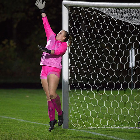 Knowing that Taylor wanted to continue to play competitively in college, she committed to playing goalie for Adrian College after falling in love with the team and the academic program. Now a senior, Taylor has started as a goalie all four years while maintaining a rigorous academic schedule majoring in neuroscience.