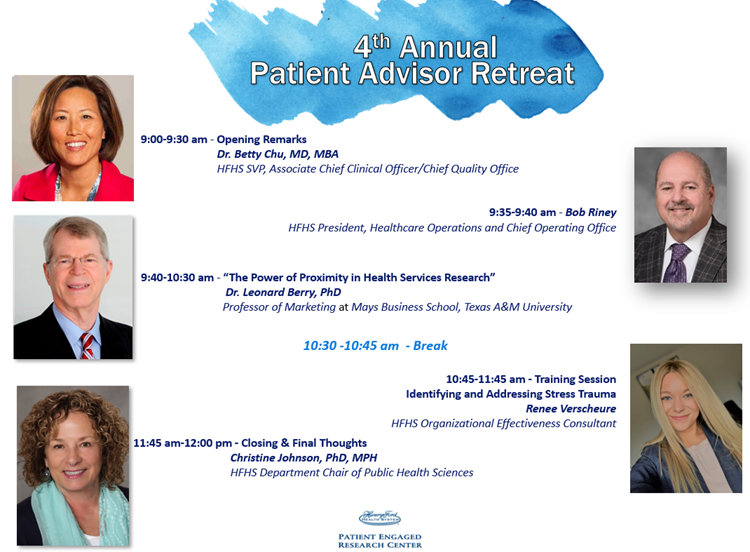 2017- Opening Remarks with Henry Ford Health CEO Wright Lassiter, Highlight of PFAC Accomplishments, Skill Building Session, Patient Advisor Keynote Speakers.