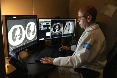 The gold standard for identifying lung cancer early uses computed tomography (CT) scans. Henry Ford Health was part of a national study that found CT lung screening reduced the chance of dying from lung cancer by 20 percent, compared with chest X-ray screening.